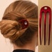 This sale is for ONE Anodized Aluminum 4.9 inch Curved Three Prong Hair Fork. Each has a Rhinestone added to them to add a little sparkle. They are 4.9 inches long and a about 1 3/8 inch wide and 1/8 of an inch thick. This Hair Fork is curved to fit the contour of your head.